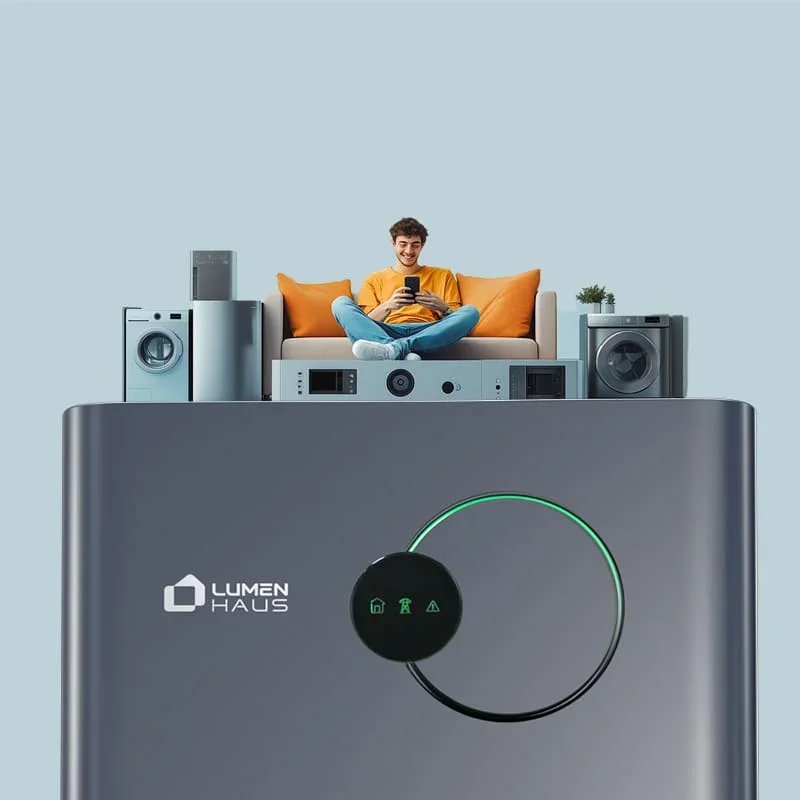 Der Speicher nimmt überschüssigen Solarstrom auf, versorgt dein Zuhause, deine Wallbox oder Wärmepumpe und schaltet bei Stromausfall automatisch in den Notstrombetrieb. Alles lässt sich bequem in der myLumenHaus App überwachen.